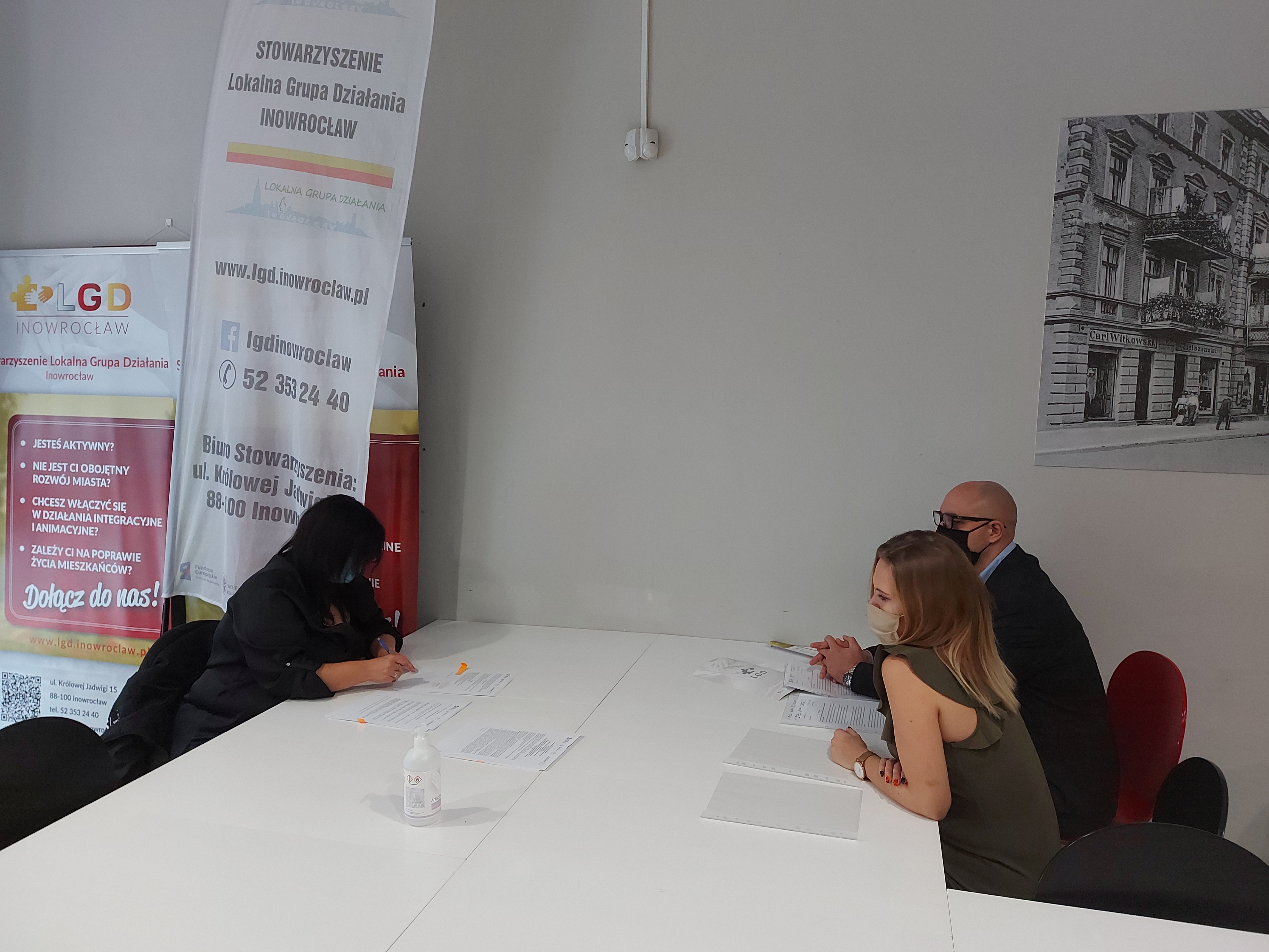 W związku z rozstrzygnięciem naborów wniosków na projekty grantowe nr 1/G/2020/Ino oraz 4/G/2020/Ino, Stowarzyszenie LGD Inowrocław w dniu 23 października 2020 roku podpisywało umowy z grantobiorcami, których projekty przeszły pozytywną weryfikację, ocenę oraz mieściły się w zaplanowanej alokacji środków.
