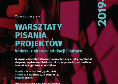 (zapisując się należy podać nazwę szkolenia, imię, nazwisko, telefon, reprezentowaną instytucję, miasto, powiat, wybrany termin szkolenia) - Warsztaty Pisania Projektów