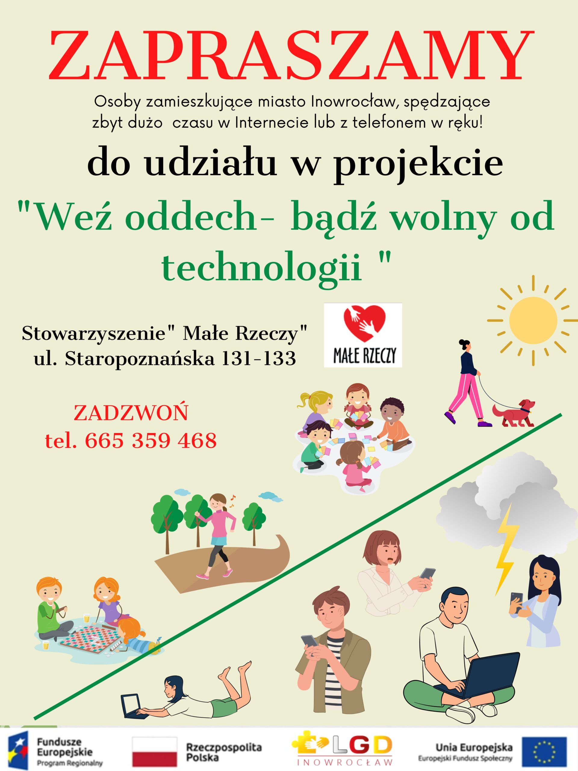 Od 1 grudnia 2022 roku Stowarzyszenie „Małe Rzeczy” realizuje projekt: „Weź oddech – bądź wolny od technologii”.